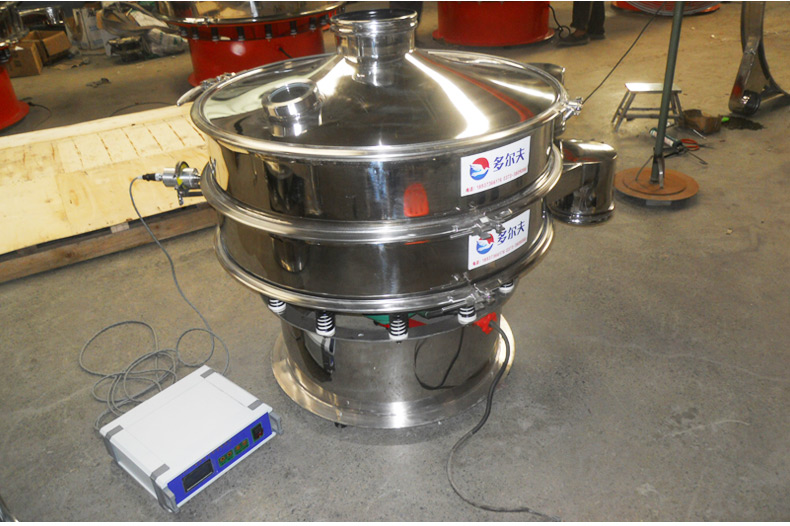 由于硫磺粉容易堵网,我公司为您设计的振动筛加了一套外置型的超声波系统,不但可以起到清网、防止堵网的作用,而且还可以提高筛分效率。超声波系统自动找频,使用方便,不易出现问题。在超声波旋振筛的防尘盖上加了观察窗,方便工人操作机器的时候观察物料在筛面上的运行情况。
