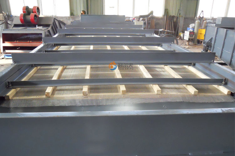 直线震动筛在钾长石颗粒大小分级中有着广泛的应用。钾长石直线筛利用两台振动电机作为激振源,当两台振动电机做同步、反缶旋转时,其偏心块所产生的激振力在平行于电机轴线的方向相互抵消,在垂直于电机轴的方向叠为一合力,因此震动筛的运动轨迹为一直线。两电机轴相对筛面有一倾角,在激振力和物料自重力的合力作用下,物料在筛面上被抛起跳跃式向前作直线运动,从而达到对物料进行筛选和分级的目的。钾长石分级直线震动筛具有效率高,产量大,维护简单,经济实惠等优势,是钾长石颗粒大小分级的专用设备。可按照用户需求安装1-6层筛网,同时将钾长石颗粒分成2-6个大小不同等级的粒度,筛网孔径大小可根据用户需求安装。