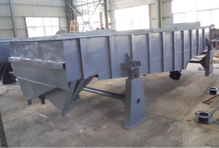 振动型筛沙机即我们常见的直线筛是靠两台振动电机作为动力源。两台振动电机做同步、反向旋转时,其偏心块所产生的激振力在平行于电机轴线的方向相互抵消,在垂直于电机轴的方向叠为一合力,沙石类物料在筛面上的运动轨迹呈一条直线。两电机轴相对筛面有一倾角,在激振力和物料自重力的合力作用下,物料在筛面上被抛起跳跃式向前作直线运动,从而达到对沙子进行筛选和分级的目的。